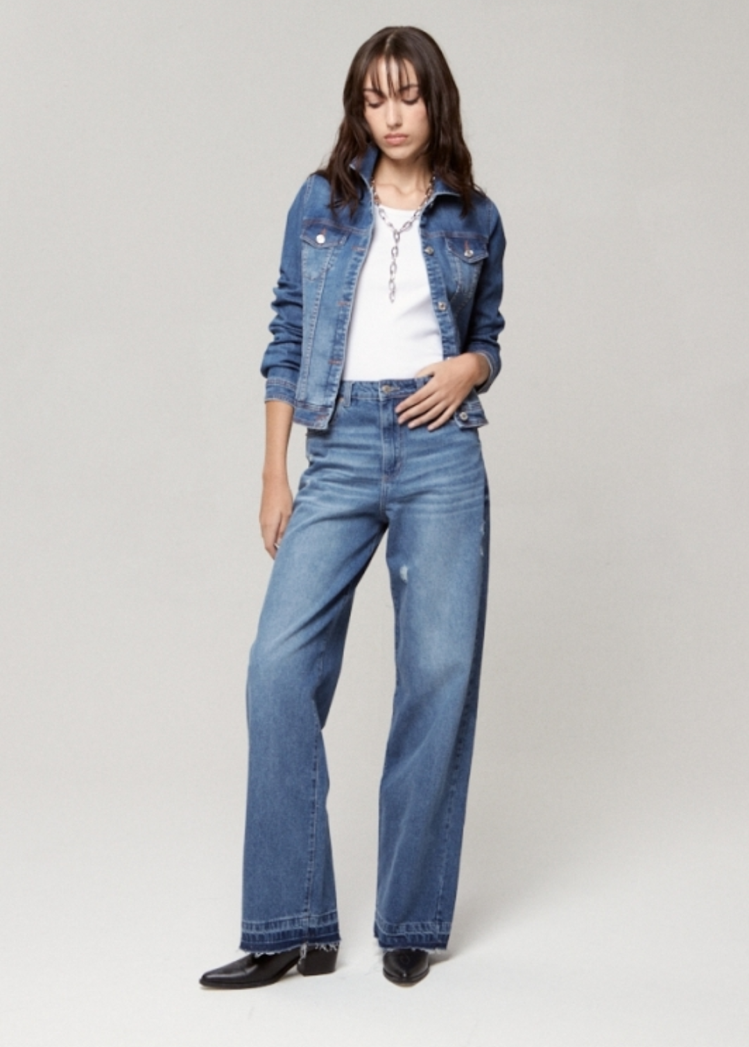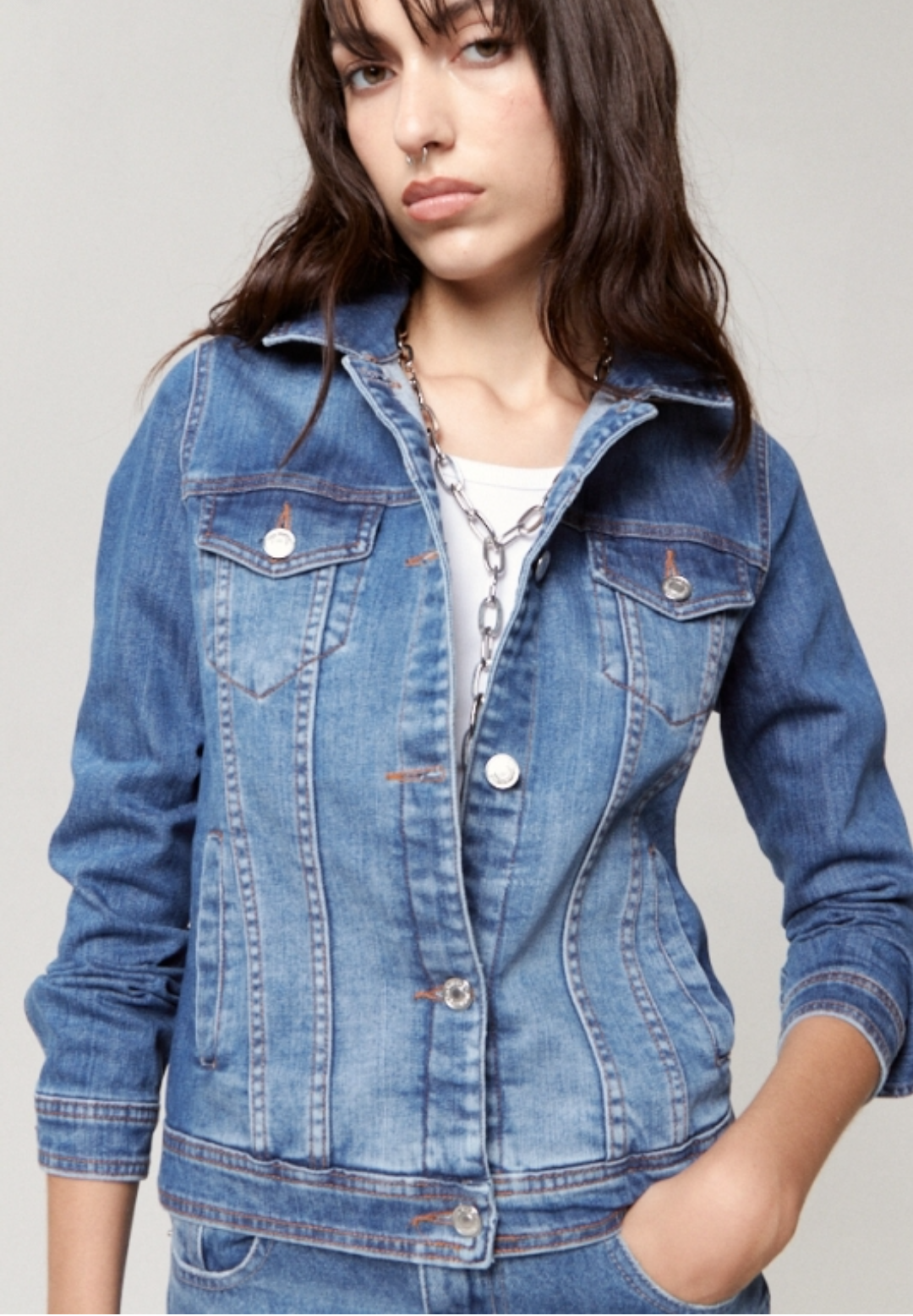 Campera de jean, corte clásico, St Marie, talle Médium, elastizada