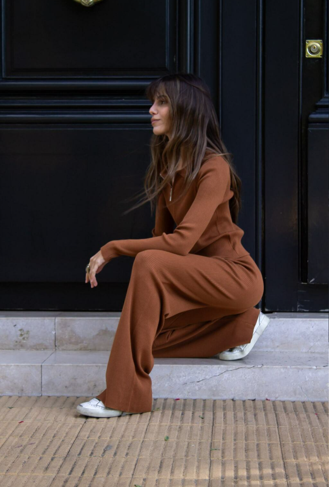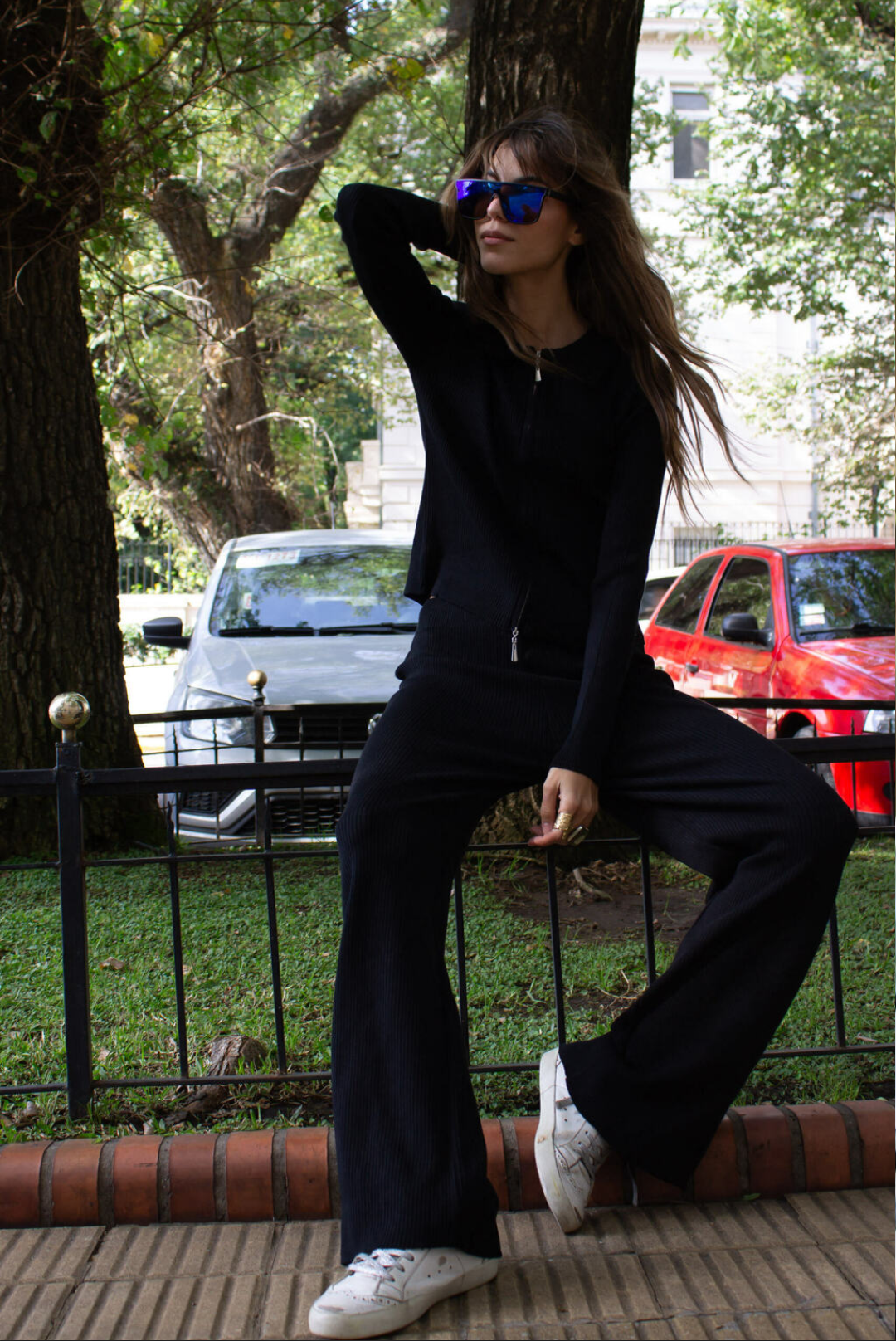 Conjunto campera con doble cierre y pantalón. De hilo importado.