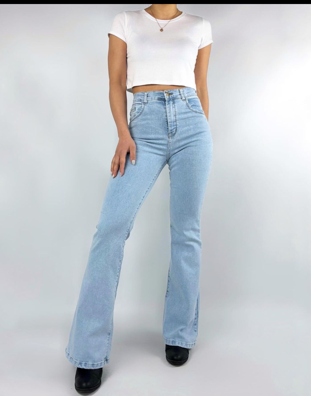 Jean Oxford, elastizado, súper calce. Tiro alto. En celeste