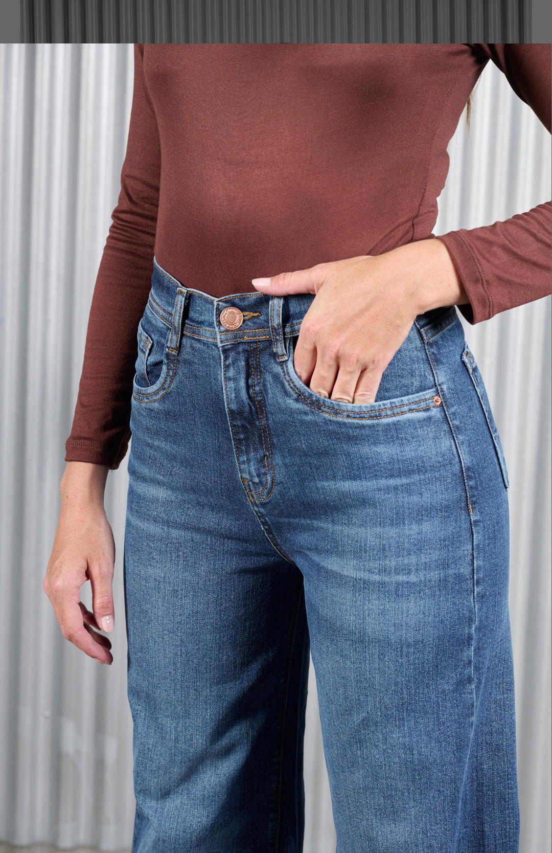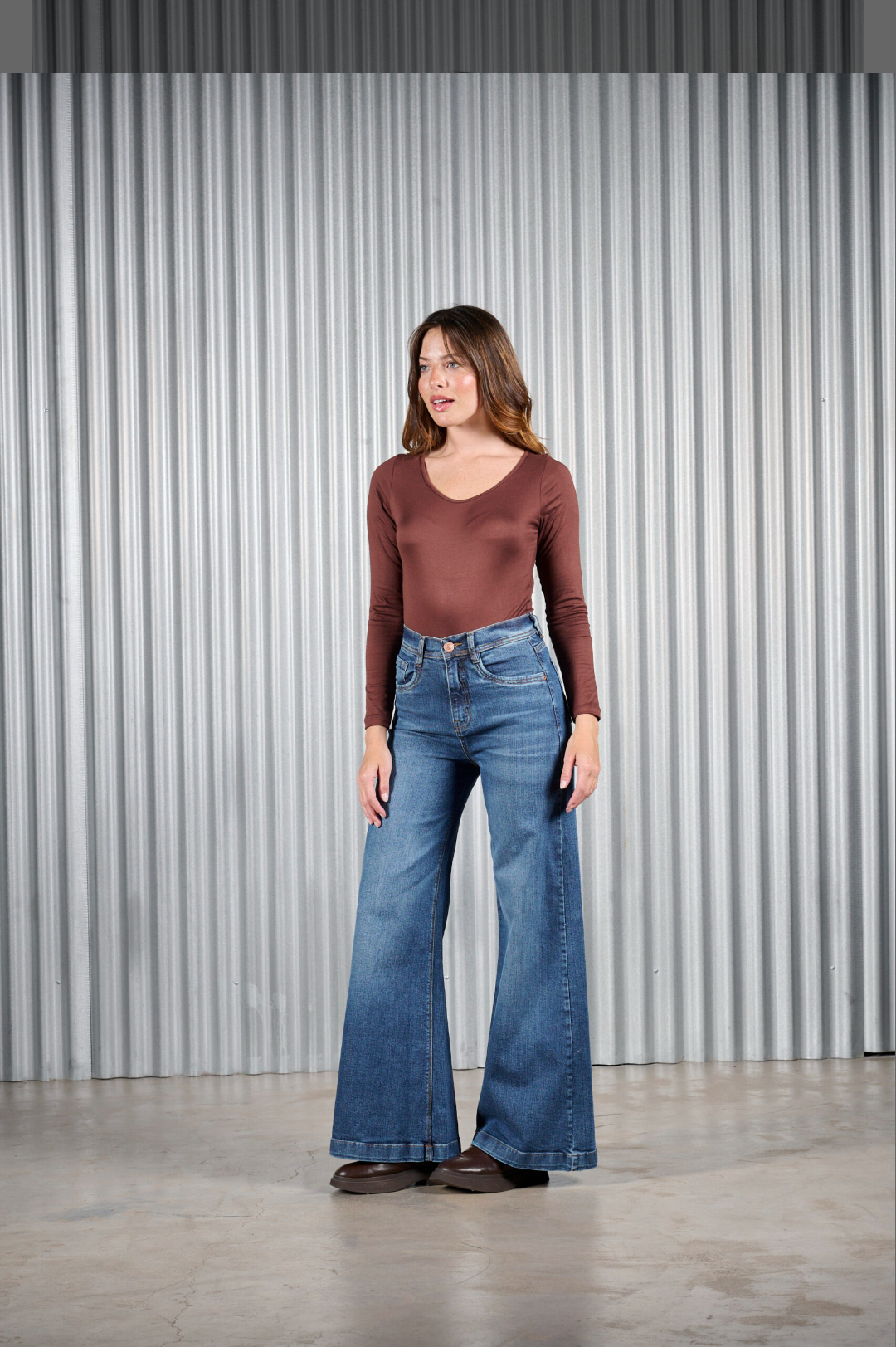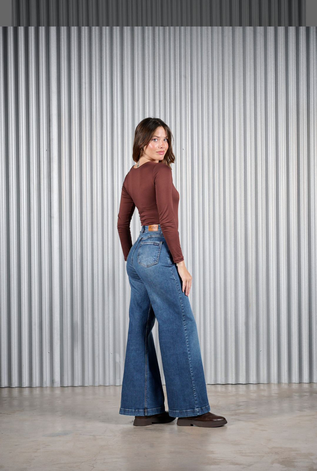 Jean wide leg elastizado, súper calce.