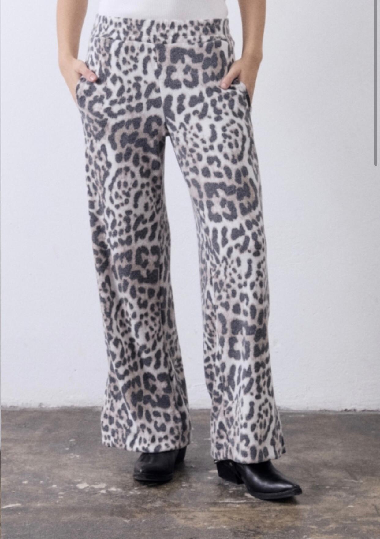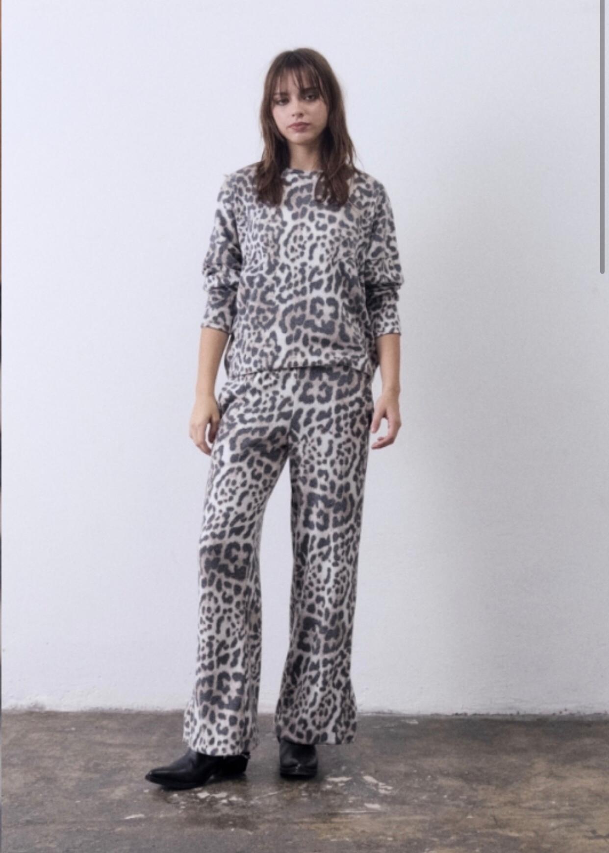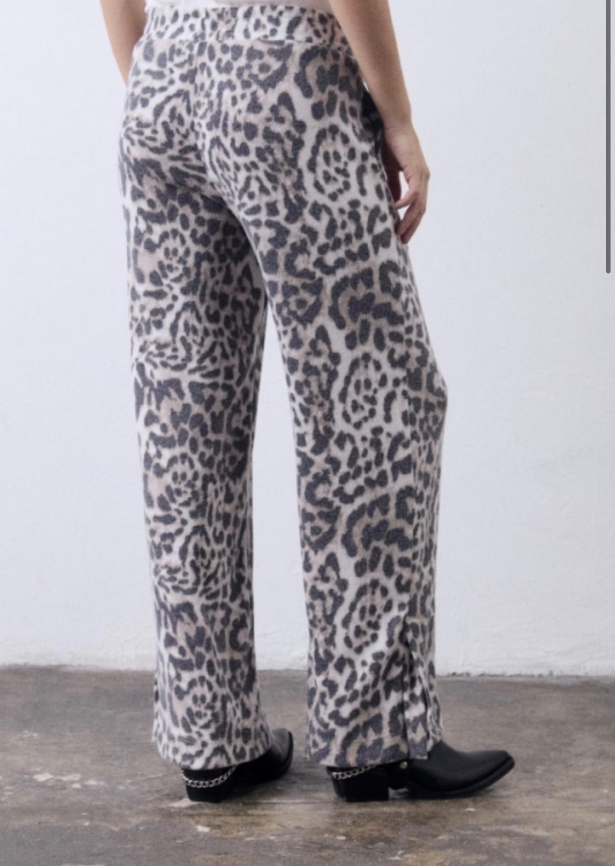 Pantalon de lana print pierna ancha con bolsillos laterales. Corte en lateral.