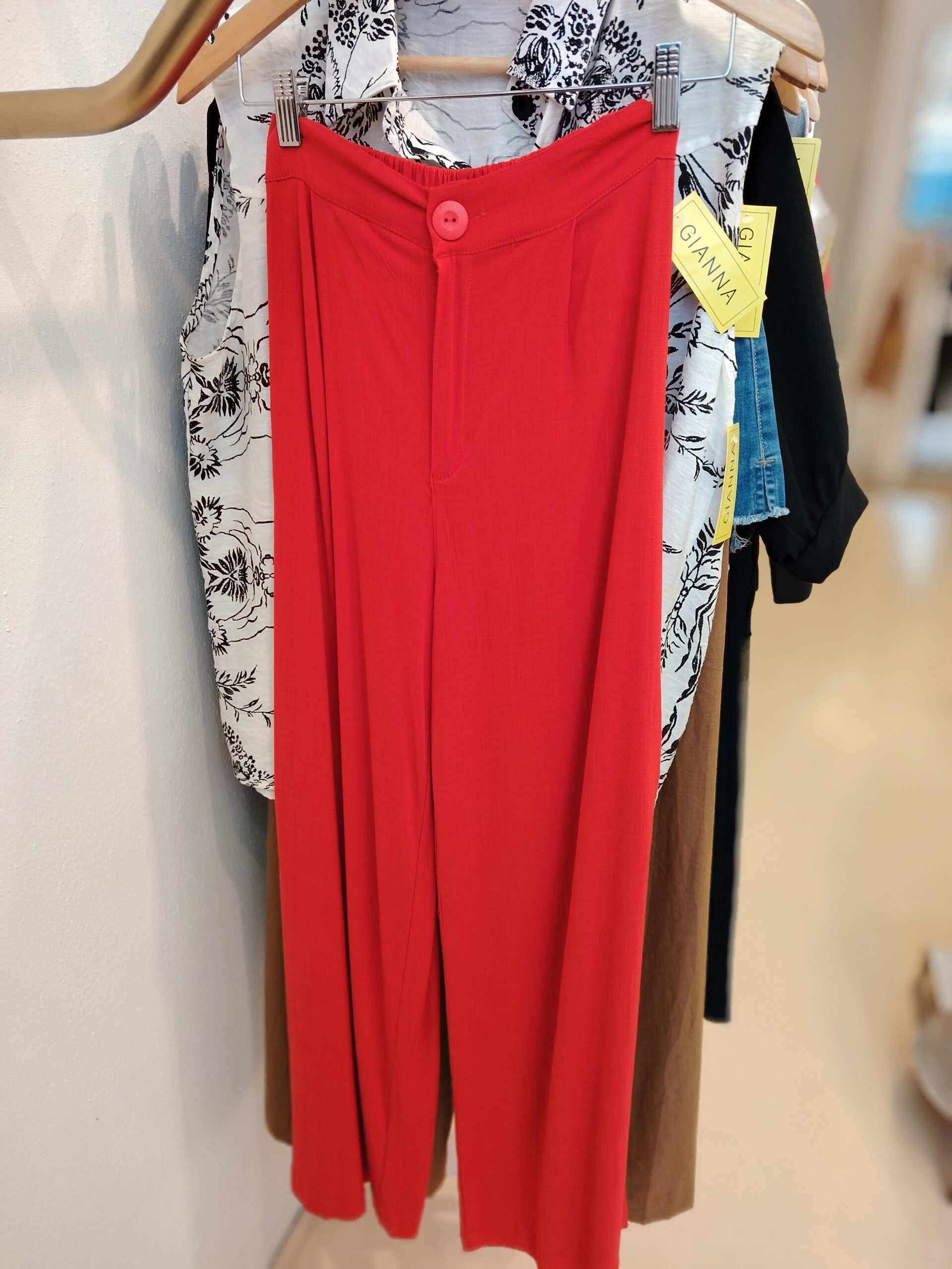 Pantalon recto, con elástico atrás, boton y cierre delantero.