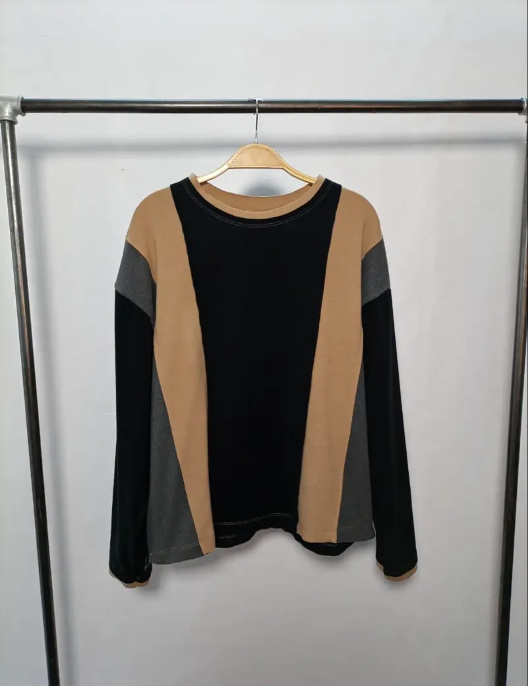 Sweter combinado en tela soft. Talle único. Aprox S/M